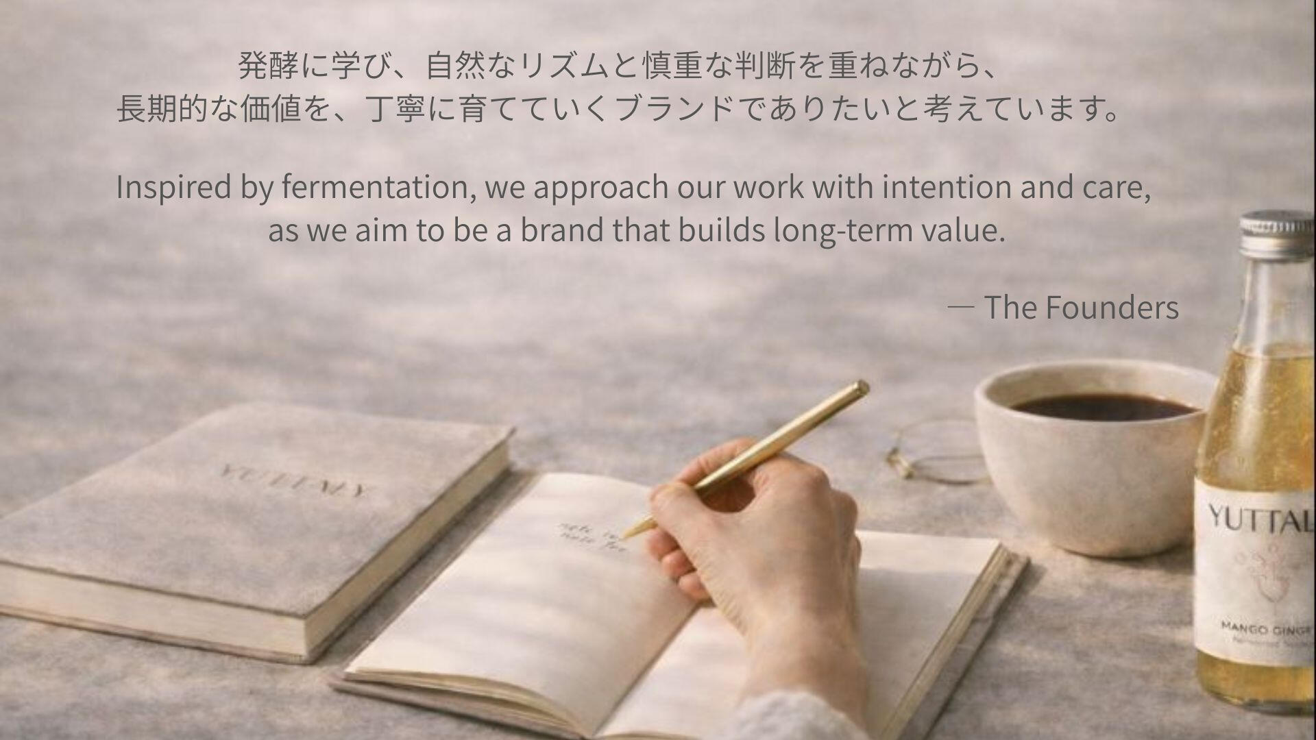 Our mission is to make gut health delicious, approachable, and part of everyday life.Yuttalyは、日本の発酵文化を現代の腸活・ウェルネスへとつなぐ